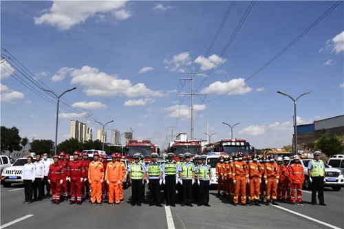演练模拟了G6京藏高速白银西收费站出口因雨天水毁导致路面塌陷,造成车辆受困、有人员受伤被困的突发警情,从接警、交通秩序疏导组现场处置分工、现场施救、现场勘查、对受损车辆施救及道路维修、撤除现场、恢复交通等多方面进行了实战模拟。演练中,在接到险情报告后,交警部门指挥中心第一时间向市政府报告,按照指示,各部门迅速响应,上下联动,立即成立应急指挥部,启动应急管理处置预案。公安交管部门对事故现场部分路段进行分流管控,并及时向社会发布道路交通管制信息,引导提前绕行事故路段;白银区消防救援站人员赶赴现场后,成功救出被困在车内的伤者;由白银市第一人民医院医护人员对伤员进行初步救治,并送往医院进行进一步治疗;白银公路局应急抢险保障中心立即组织人员对损毁道路进行抢修,保障道路畅通。